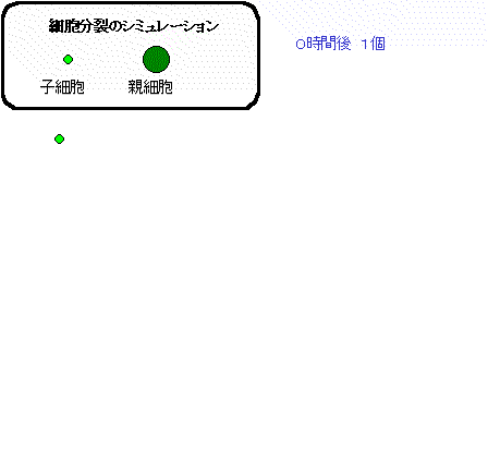 ここではその問題を分かり易くするために,細胞分裂で言い換えてみましょう。つまり,「ひとつの子どもの細胞は1時間経つと親の細胞になり分裂可能となる。その