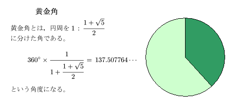 それは,1周360°を黄金比に分けた角,すなわち黄金角ごとに枝をだすのが,最適であることが知られています。