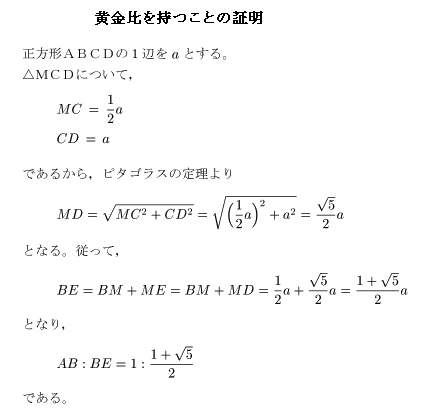 呼ばれる比が最も美しいと言われています。ところで,どうしてその比率がバランスよく見えるのでしょうか。もしかしたら,その中に何か神秘的な規則が内在しているのではないでしょうか。