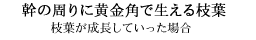 枝分かれについては,黄金比も関連しています。それは,幹の周りのどの方向に枝を出すかに関係しています。