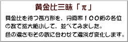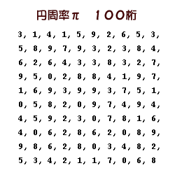 見えますが,実はあの円周率(3.141592・・・)の各桁の数字で拡大縮小してあります。緑色の濃さもその値に合わせて濃淡が異なります。