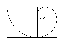 まず黄金比を持つ長方形と螺旋の関係を調べてみましょう。黄金比を持つ長方形の性質は,正方形を次第に小さくしながら加えていったときに充填される