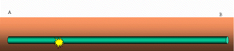 例えば,1本道の地下に埋設された水道管のどこかに穴が空いて水漏れがしている,とします。そこはAB区間内にあることは分かっていますが,その何処なのかは分かりません。そこで